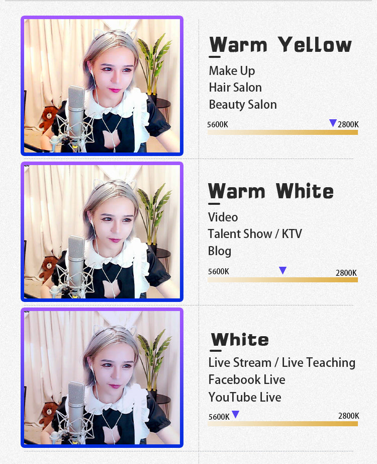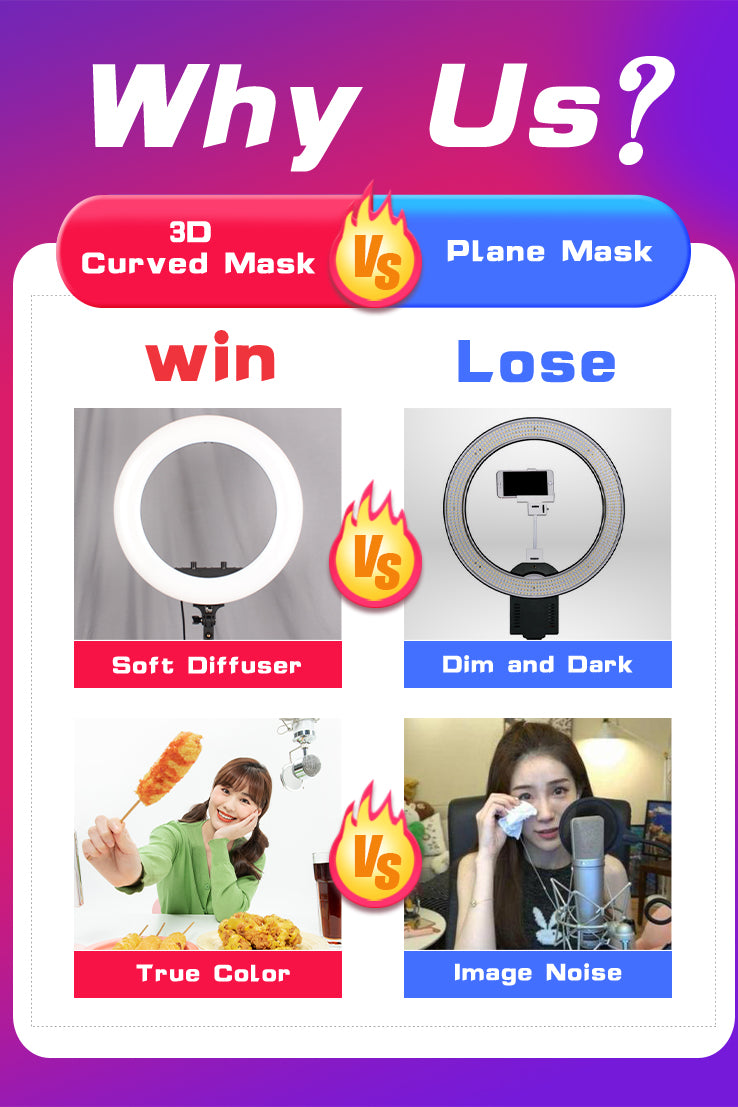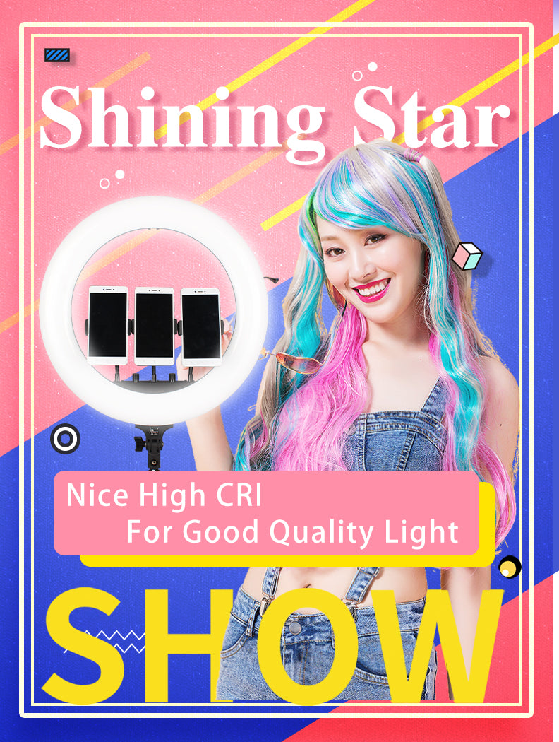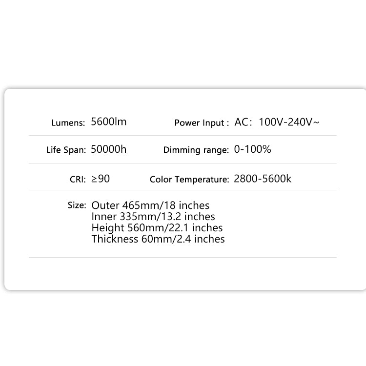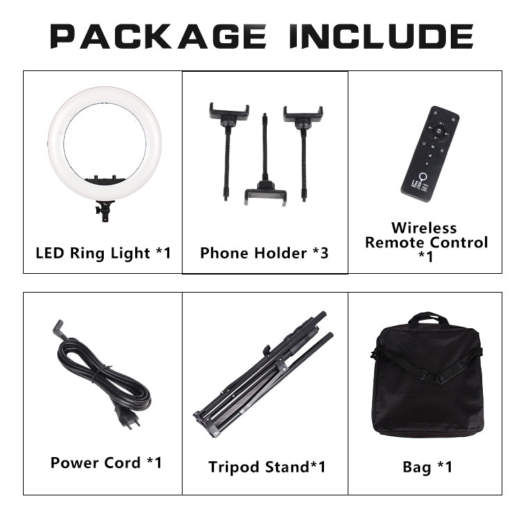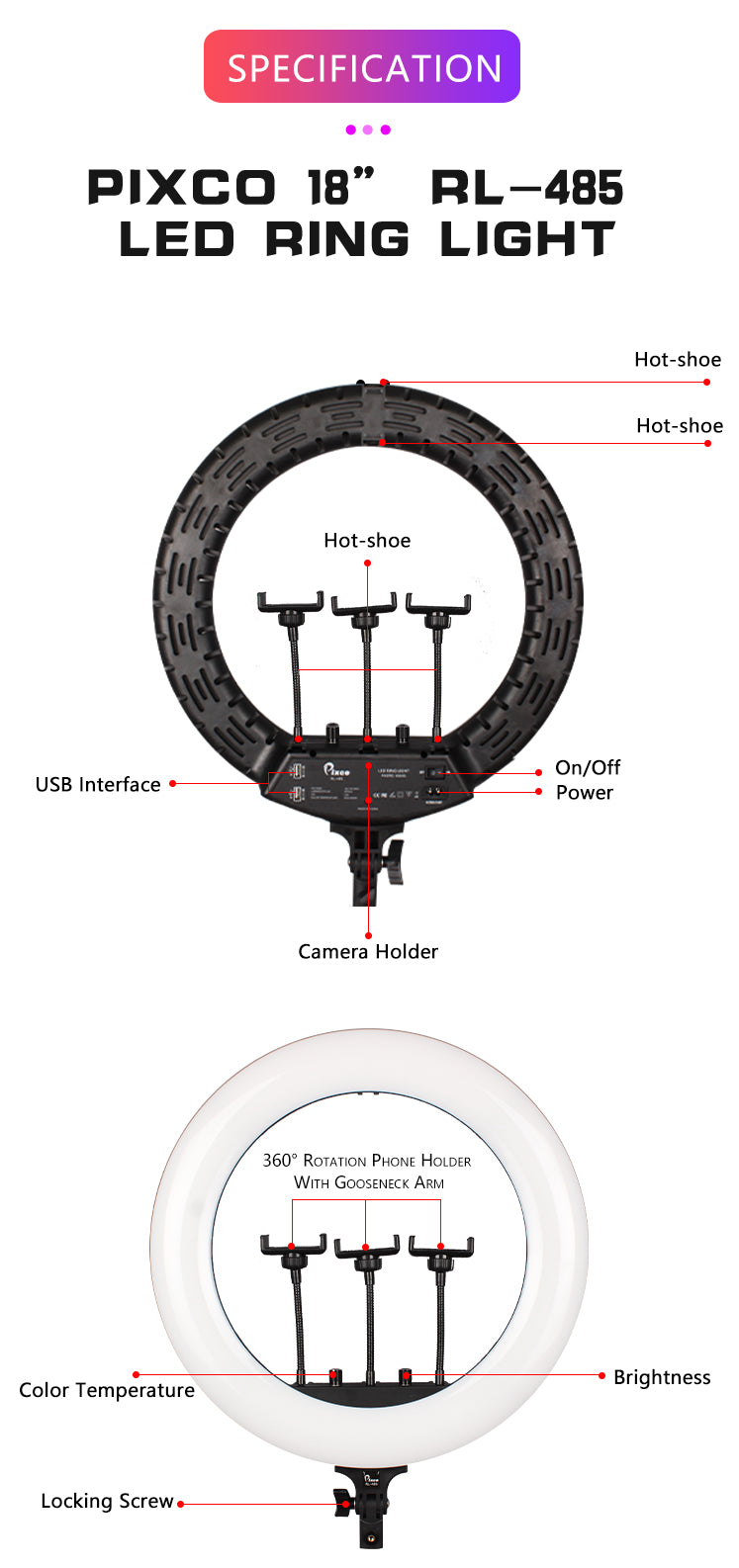 【Bi-Color Temperature and Brightness Adjustment】18 inch ring light with multiple variants of lighting (ranging from 2800K to 5600K color temperature without change the color filter, 0%-100% brightness adjustable). Built-in LCD, shows the situation of brightness, color temp, perfect for different varieties of photography.【18 inch Ring Light with Light Stand】Special LED SMD design and 485 pcs LED beads, perfect for many uses, portraits, products, pets, and video. The ring light tripod, aluminum alloy construction for stabilizing the makeup ring light, height adjustable.