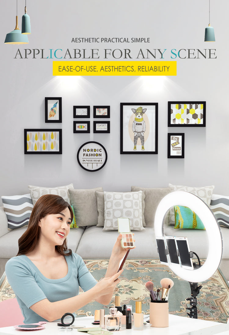 【Remove Control and Phone Holder】Change the color temperature and brightness, adjustment is accessible from the included remote control. Especially the color temperature, it does not require change filters like some other ring lights, only press a button on the remote. The light ring includes various phone, camera, and device mounts that place it inside the ring.